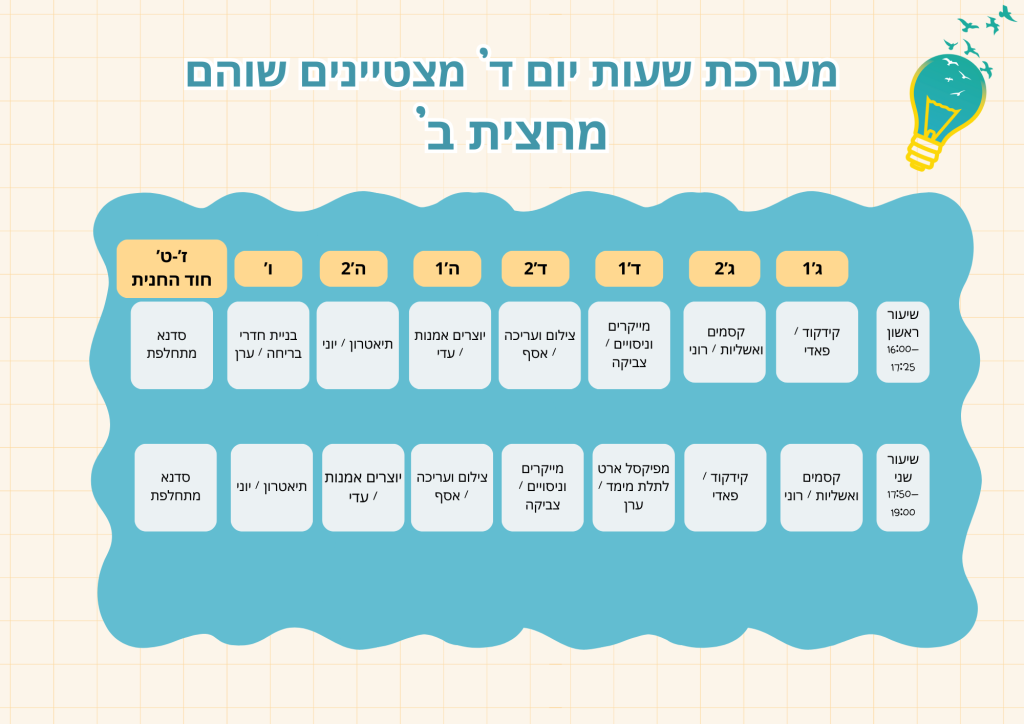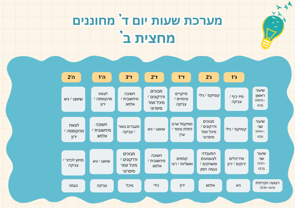 מערכת שעות יום ד' מחוננים