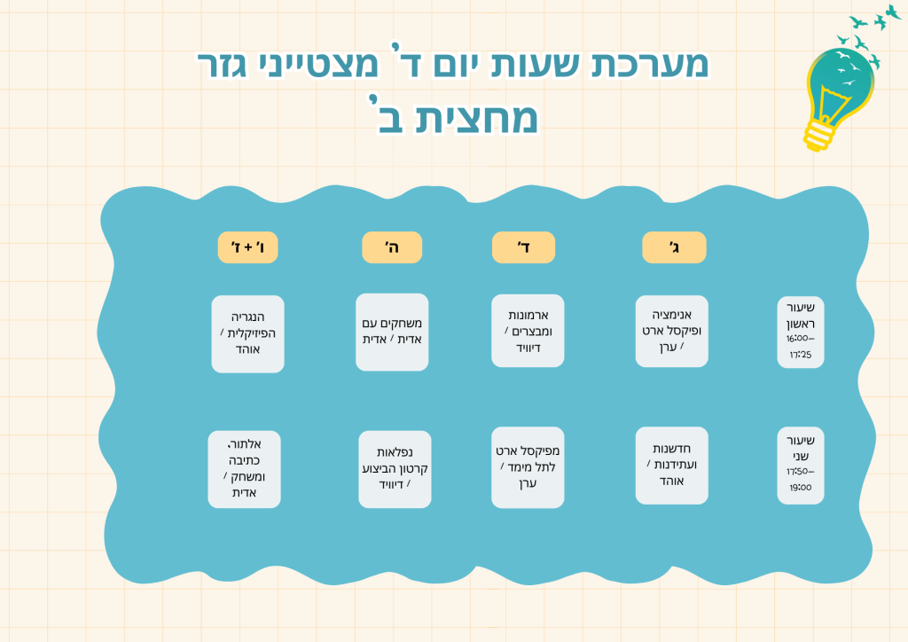 מערכת שעות יום ד׳ מצטייני גזר